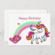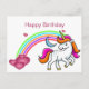 Cute, Colourful Unicorn, Rainbow, Hearts, Birthday Postcard