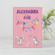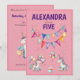 This colourful, fun birthday invitation design features cute unicorns prancing happily among colourful balloons, bunting, confetti and a cupcake. It is easily personalized and your little girl will love the whimsical design and pink background. This invitation is perfect for any age.