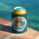 Funny can cooler featuring a cute ginger kitty on a surf board. Perfect for a cat lover or surfer
