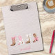 This "Coquette Cowgirl" personalized clipboard is the perfect blend of sweet and sassy! Featuring four cowgirl boots adorned with pink and white bows, it brings a playful Western vibe to any space. The taupe background, detailed with a subtle wood grain pattern, adds a rustic elegance. Personalized with a name in a charming pink script font, this product is as unique as it is stylish—a must-have accent for any coquette cowgirl’s vibe!