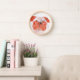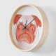 Cute Coral and Pink Grumpy Pug Face Wall Clock