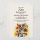 Cute Corgi dog with sunflowers 70th birthday party invitation for women. This card can be designed for anyone of any age. Contact me for assistance with your customization or to request additional matching or coordinating products for your celebration.