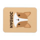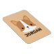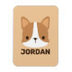 This design features cute little corgi dog with personalized name in brown modern sans serif font style on light brown background.