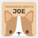 This design features cute little corgi dog cartoon illustration with personalized name in brown modern sans serif font style on light brown background.