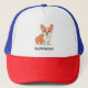 Cute Corgi Puppy with Pun Trucker Hat in Red and Blue