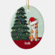 Cute Corgi Santa Hat Monogrammed Christmas Tree Ceramic Ornament