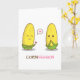 Looking for a greeting card for Valentine's day or other romantic occasions to express your love for someone special? Choose this cute and funny cartoon card which has a corn which is holding on to a pink flower and confessing its love for the sweet pretty corn. The text reads "Cornfession" which is a puny wordplay on the word confession. A humourous corny cartoon which just puts a smile on the recipient's face!