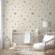 Cute Cosmic Space Sun Moon and Stars on cream Wallpaper