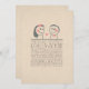 Modern wedding invitation with cute couple drawing - smiling bride and groom. Nice typography, kraft paper grain background invite for your casual and fun wedding theme.