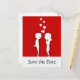 Silhouette Couple with Hearts Save the Date Wedding Announcement Postcard in Red, White and Black.