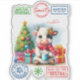 A cheerful cow sits with a warm beverage in front of a beautifully decorated Christmas tree. Colourful presents surround it, adorned with festive stamps and playful holiday themes, embodying the spirit of joy and celebration during the holidays.