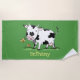 Cute cow in green field cartoon illustration beach towel