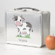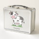 A Metal Lunch Box with a cute cow on grass and a personalized forename for back to school or office!