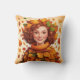 Cute Cozy Colourful Leaves Fall Woman Pattern Throw Pillow