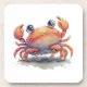 Un dessous de verre en plastique dur avec une aquarelle illustrant un crabe très mignon.