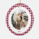 Cute Cranberry Red Gingham Plaid Custom Photo Christmas Holiday Ceramic Ornament