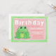 Idéal pour les enfants ! Invitations spéciales de fête d'anniversaire rose & vert avec crayon.