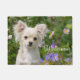 A young long-haired cream white coloured Chihuahua dog sitting in a flowering garden, photo taken by Katho Menden. This doormat - Welcome - is a gift idea for dog lovers. http://www.zazzle.com/kathom_photo - - Personalize it with your name or text. -