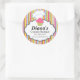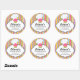 © 2012 Socialite Designs. Whimsical cupcake design stickers that incorporates a pink-icing cupcake, a baker's hat and colourful striped background.