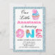 Bright and colourful light blue glitter sparkles first birthday invitation with a sweet and cute cupcake and doughnut and candy letters. Easily add your full name, and the date, time and address of the birthday party. Perfect for a sweet little princess turning one!
