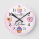 Cute Cupcake Pink Watercolor Personalized Kitchen Round Clock