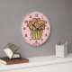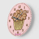 Cute personalized cupcake wall clock. The design is decorated with a fun large cupcake with chocolate frosting and colorful sprinkles. The bottom part, just under the number six, includes a custom name that is easy to personalize. Great kids room decor.