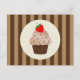 Super cute design featuring delicious looking chocolate sprinkles cupcake with strawberry on top. On background you can see brown, tan and beige colour scheme with polka dot and stripes pattern. Isn't that cute!