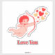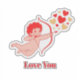 Vibrant cartoon cupid with wings, a red dress, and a bow flies across a heart-filled red backdrop. Perfect for Valentine, romance, and family-themed projects.