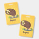 Cute curious funny brown owl cartoon illustration badge