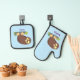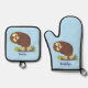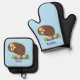 Cute curious funny brown owl cartoon illustration oven mitt & pot holder set