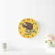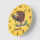 Cute curious funny brown owl cartoon illustration round clock