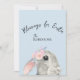 Blessings for Easter Quote Cute Curious Grey Rabbit Pink Flowers Blue Holiday & Seasonal Easter Cards.
