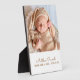 A sweet custom baby photo plaque with decorative edges and soft cream colored background with birth stats. Delete this image and upload your own newborn baby photo, and add your birth stats. Display this lovely plaque on a mantelpiece or in the nursery.