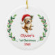 Cute Custom Baby's First Christmas Festive Puppy Ceramic Ornament