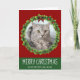 Beautiful custom pet folded Christmas card featuring a green holiday wreath with a red background white text. Replace with your cat's photo in the centre of the wreath or add a kitten picture for your friends and family. Merry Christmas is written in white.