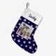 Cute Custom Dog Photo Name Blue White Paws Small Christmas Stocking