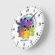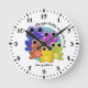 Cute, colourful, personalized FROG clock, designed with a family of brightly coloured frogs, set against a teal circle in the background. The curved text reads ALWAYS FULLY RELY ON GOD, which is based on the popular Christian acronym for F.R.O.G. There is a customizable placeholder name at the bottom which you can personalize with your own. Matching items are available.