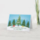 This beautiful personalized Christmas tree card features pretty green fir trees capped with snow on a lovely winter landscape and blue sky. Customize with your last name and year for a family reunion or Xmas party. Cute custom holiday cards.
