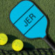 Cute Custom Monogrammed Initial Cool Blue Sports Pickleball Paddle
