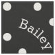 Type in any name and watch the instant preview! Your name or word printed on real fabric, fresh, cute and trendy personalized name printed fabric with black and white tone colour scheme and fun festive polka dot circle pattern print. Great to create your own fabric designs for home decor, fashion, accessories, handmade gifts and more!