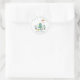These custom Christmas sticker labels feature a cute nutcracker theme. An illustration of a Christmas tree is pictured with little gifts below it. A nutcracker toy soldier is standing on one side of it, with a sugar plum fairy fluttering above him. The Mouse King is printed on the other side. Little snowflakes fall around the tree. A sample greeting is printed above the image, with a name printed below in a whimsical green font. You can personalize the stickers to include your own custom name or text.