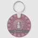 Cute Custom Name Whimsical Pink Snowman Mandala Keychain