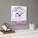Cute Custom Personalized Magical Rainbow Unicorn Square Wall Clock