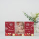 Bright Christmas red with snow falling. Glistening Gold, Red and White balls /ornaments, border the bottom of the card. Change text and font to suit. Add your favourite photo. Add your Photo, Customize text and font.