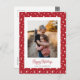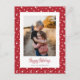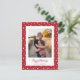 Cute custom red photo holiday postcards featuring stars and a beautiful festive script title. Easily personalize these red photo holiday postcards with your image and a family name. Custom Merry Christmas title available inside the design tool - make it visible by customizing this template further. The background, title and text can be personalized to any colour.