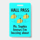 Personalize like a pro with this creative customizable classroom hall pass. Cute Kawaii aesthetic original hand drawn bumble bees with hearts for wings and flight pattern dots.