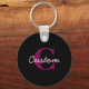 Cute Customizable Pink & Black Monogram Script Keychain