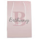 Cute Customizable Pink Monogram & Your Name Script Medium Gift Bag