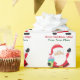 Personalized from Santa Claus wrapping paper for your kids Christmas presents with red and green script. Customize your children's holiday gifts to and from with their custom name under smiling Papa Noel in his jolly red suit.