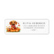 An adorable return address label featuring a brown dachshund dog wearing a scarf and surrounded by pumpkins.